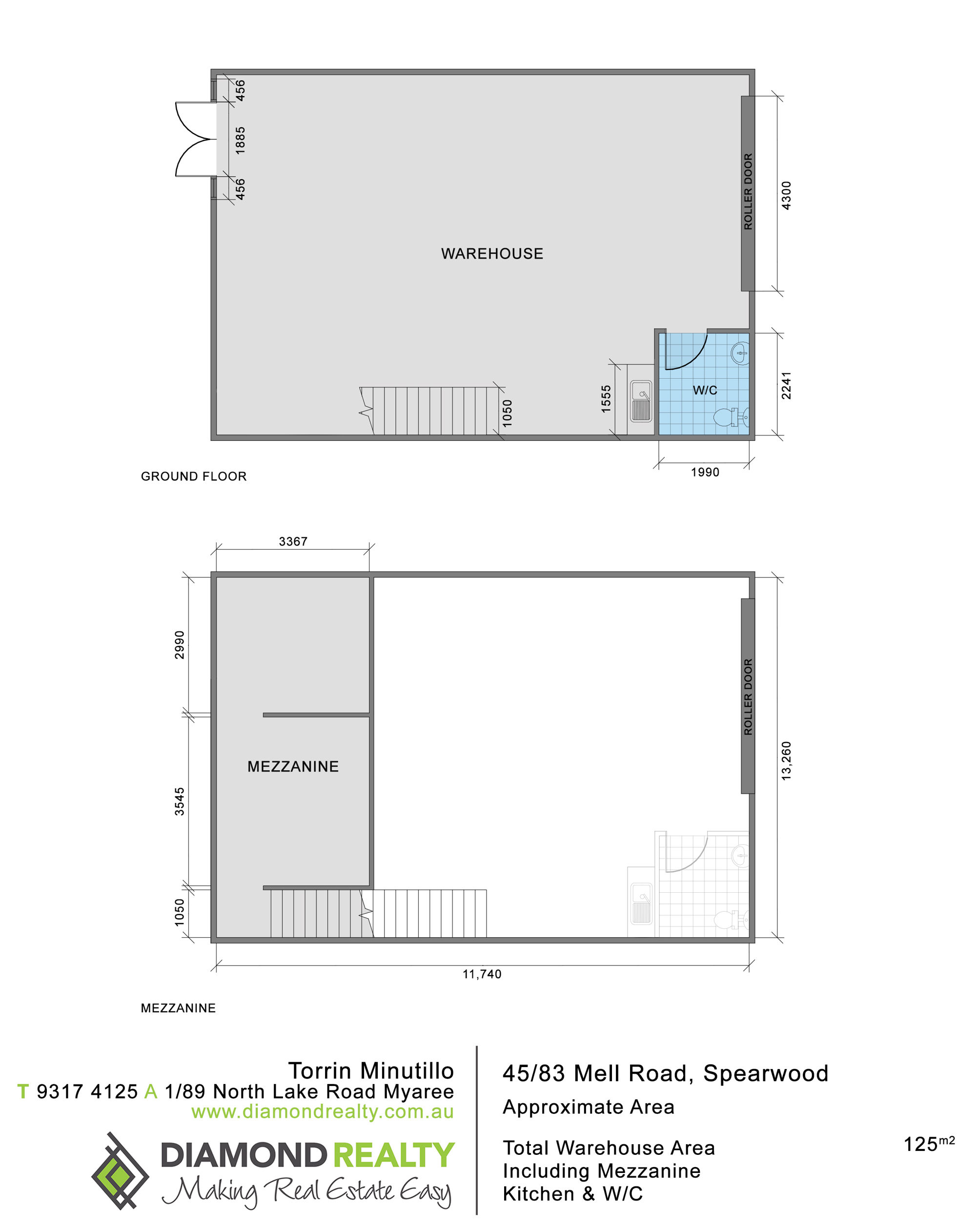 Total Area of approx 125 sqm includes approx 25sqm mezz floor which the owner will consider an office fit out if required.